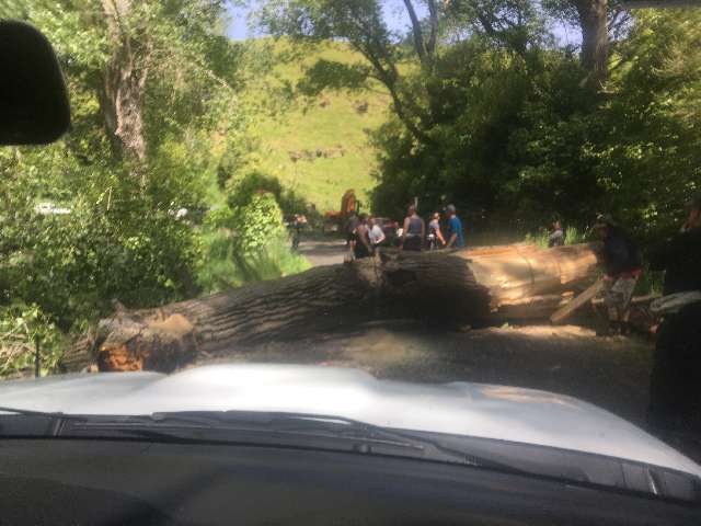 I called the race caravan and reported the tree. The seconds after it fell are a bit of a blur to me and I must have been a little panicked, it took a couple of goes for me to get the message through.